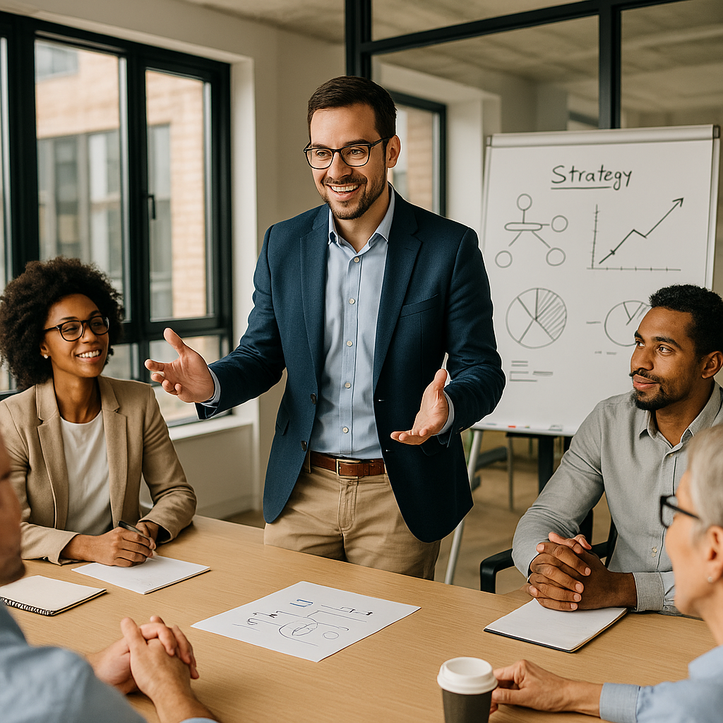 - Schopnost formulovat a sdílet vizi – leader ví, kam tým směřuje, a umí to jasně komunikovat.
